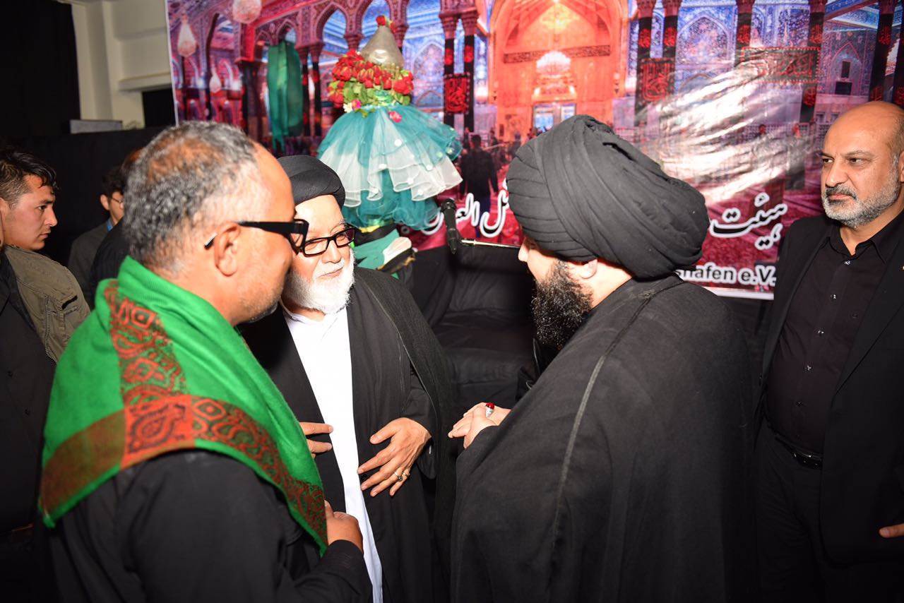 التقى ممثل المرجعية العليا في أوربا ليلة التاسع من محرم الجاليات الثلاث في منهايم الافغانية و اللبنانية و العراقية فتحدث عن الدور نهضة الامام الحسين (ع) و اثرها على المجتمع الاسلامي، كما وحث الجماهير و خصوصا الشباب منهم المحافظة على هويتهم الثقافية و ان لا يتأثروا بالأجواء السلبية المحيطة بهم لان قيمة المرء إنما تكون بمدى التزامه بعقيدته و إيمانه بمقدساته