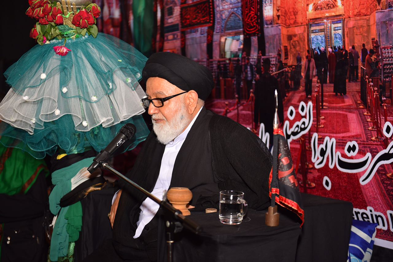 كما واشار الى بعض صفات علي الأكبر و منها تعصبه للحق اقتدا بجده امير المؤمنين علي ابن ابي طالب (ع) الذي كان لا تاخذه في الله لومة لائم من اجل اعلاء كلمة الله، فكان حريصاً على تطبيق العدل حتى ما اقرب الناس اليه و هو اخوه عقيل حينما خاطبه يا عقيل اتجرني لناراً سجرها جبارها تئن من اللظى. و هذا المثل من حياته يكفي عبرة لأولئك المتربعين على كرسي الحكم دون ان يفكروا بضروريات مجتمعهم و كانهم يعيشون في عالم اخر و الذي يؤلم فقدانهم لمصداقيتهم بين شعوبهم و اصبح البعض يتمنى بقاء الظلم الذي سبقهم.