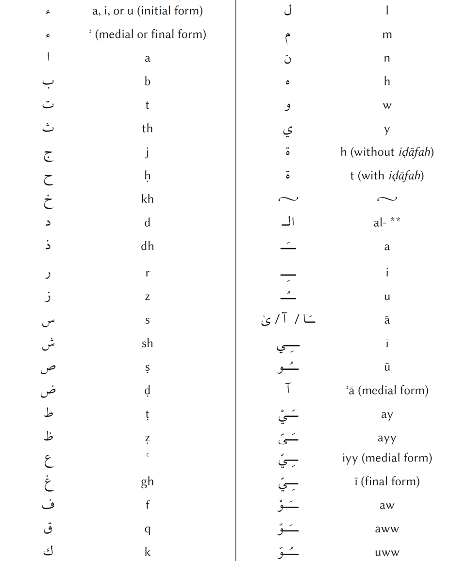 ** This does not apply, however, to those Arabic parts of the text that in practice are meant to be articulated verbally. See the fourth convention mentioned in the Translator’s Preface to the Third Edition.
