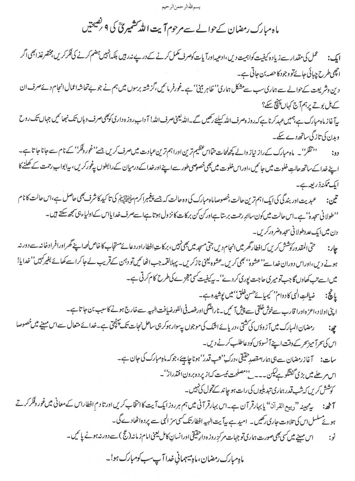ماه مبارک رمضان کے حوا لے ے مرحوم آيت الله كشميرى کی 9 / نصيحتى